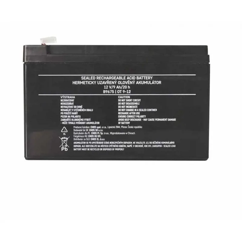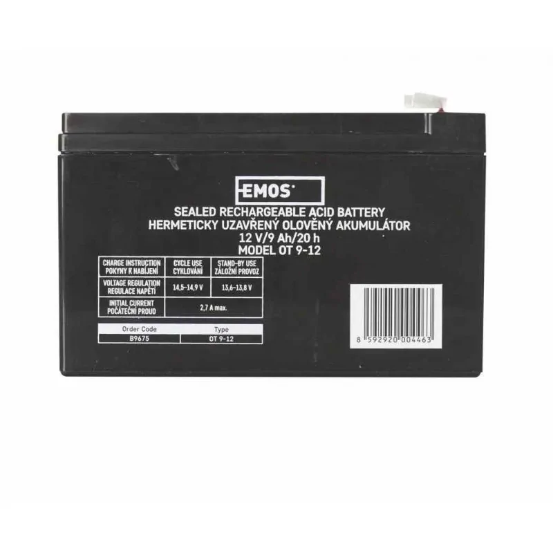 Akumulator B9675 producent EMOS, stosuje się, jako rezerwowe źródło zasilania do urządzeń zasilania rezerwowego UPS, zestawów RBC, samochodzików dla dzieci, itp. Bezobsługowy akumulator ołowiowy z zaworami regulacyjnymi w wykonaniu AGM umożliwiającym użytkowanie go w dowolnym położeniu. Jest wydajny oraz wytrzymały na niekorzystne warunki atmosferyczne. Optymalna żywotność w systemach zasilania rezerwowego wynosi 5 lat. Produkt objęty gwarancją producenta.