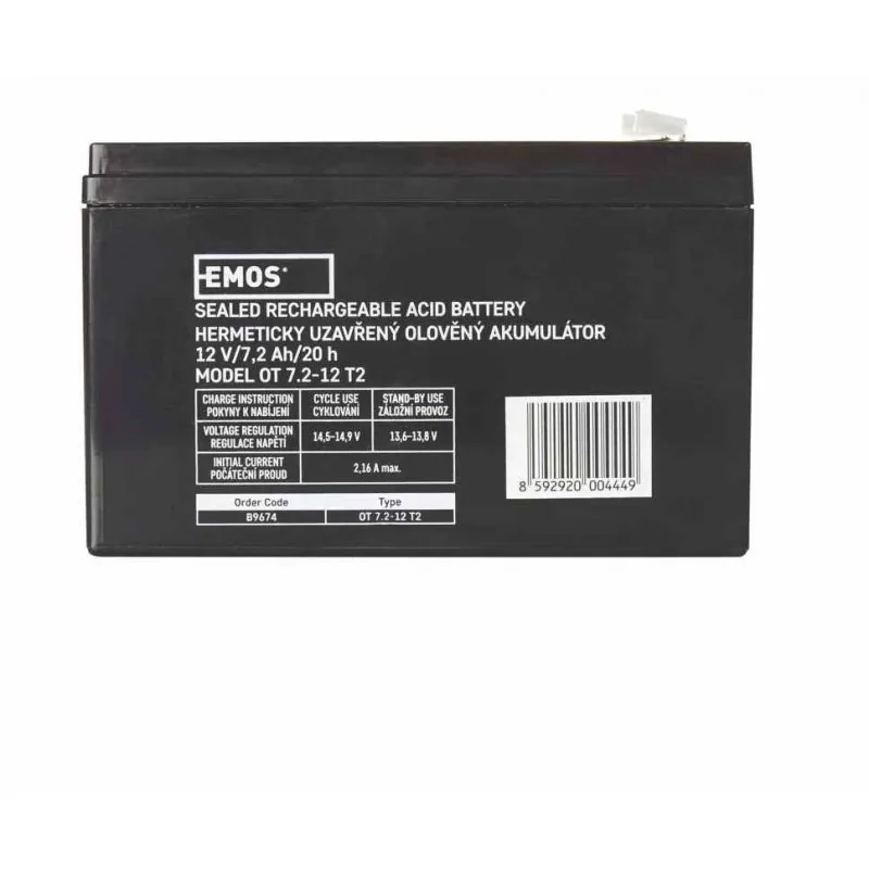 Akumulator B9674 producent EMOS, stosuje się, jako rezerwowe źródło zasilania do urządzeń zasilania rezerwowego UPS, zestawów RBC, samochodzików dla dzieci, itp. Bezobsługowy akumulator ołowiowy z zaworami regulacyjnymi w wykonaniu AGM umożliwiającym użytkowanie go w dowolnym położeniu. Jest wydajny oraz wytrzymały na niekorzystne warunki atmosferyczne. Optymalna żywotność w systemach zasilania rezerwowego wynosi 5 lat. Produkt objęty gwarancją producenta.