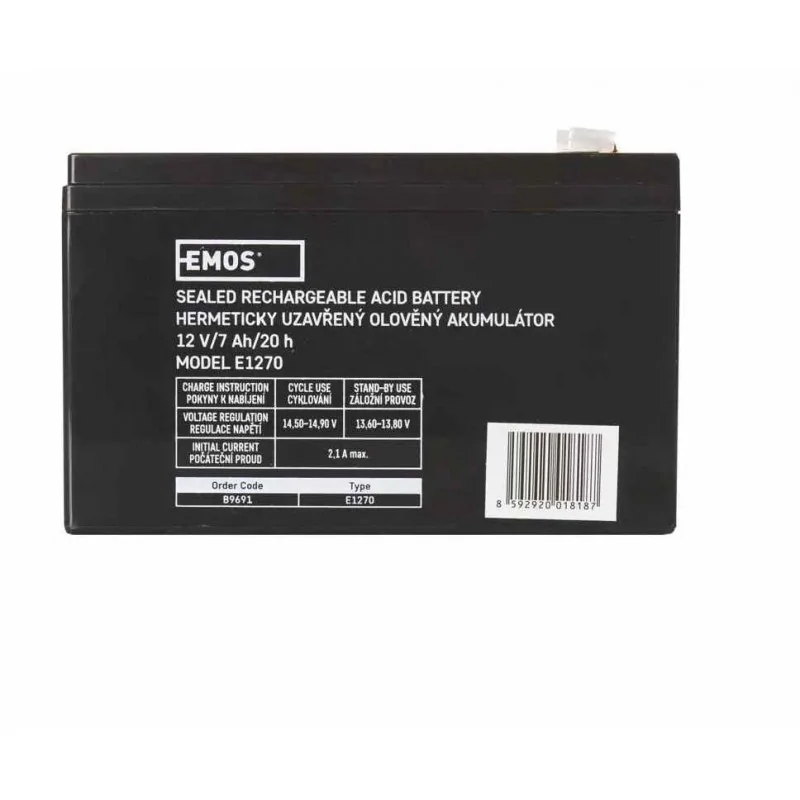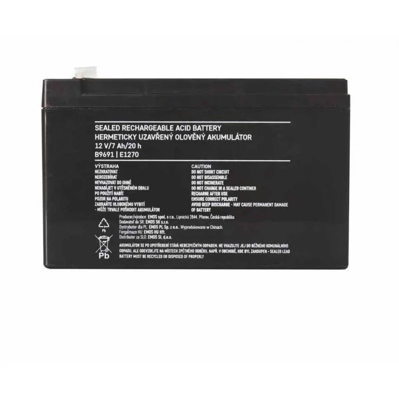 Akumulator B9691 marki EMOS, stosuje się, jako rezerwowe źródło zasilania do systemów elektronicznych - EZS, EPS (centrale Jablotron i Paradox), systemów zasilania rezerwowego wind, samochodzików dla dzieci, itp. Bezobsługowy akumulator ołowiowy z zaworami regulacyjnymi w wykonaniu AGM umożliwiającym użytkowanie go w dowolnym położeniu. Optymalna żywotność w systemach zasilania rezerwowego wynosi 5 lat. Produkt objęty gwarancją producenta.