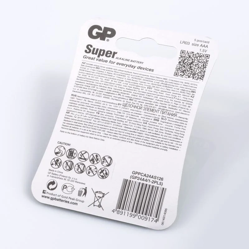 Baterie alkaliczne typu cienki paluszek AAA 5 sztuk w komplecie GP SUPER LR03