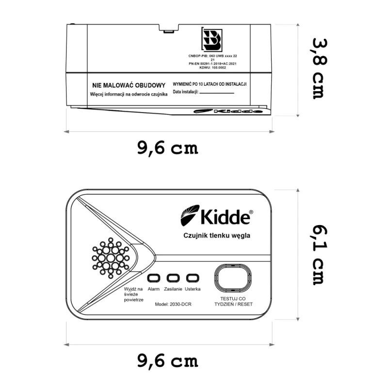 Czujnik czadu Detektor tlenku węgla na baterie KIDDE