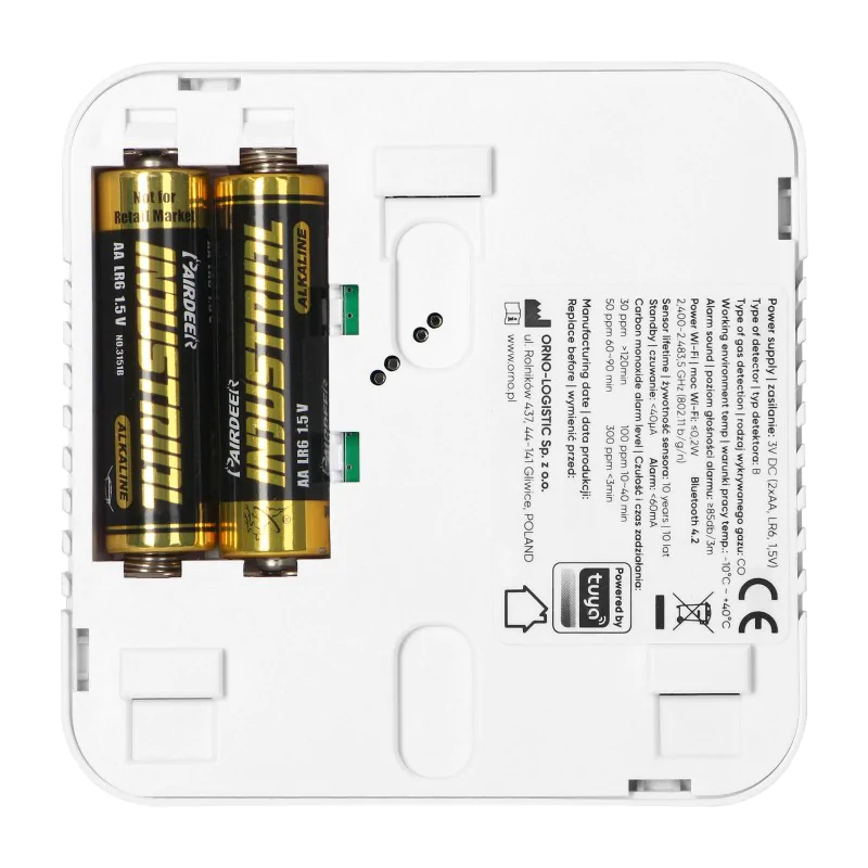 ✔️ Zasilanie bateryjne -2xAA w zestawieCzujnik czadu sterowany smartfonem