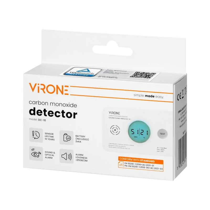- Długa żywotność i certyfikowana jakość – trwałość do 10 lat oraz zgodność z europejskimi normami (EN 50291-1:2018 i PN-EN 50291-1:2018) potwierdzona przez TUV.