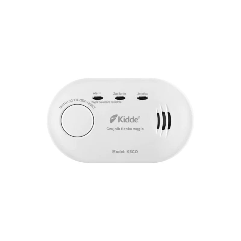 Czujnik tlenku węgla K5CO marki KIDDE, to nowoczesne urządzenie zaprojektowane, aby wykrywać obecność niebezpiecznego gazu – tlenku węgla – w pomieszczeniach domowych. Jest to czad, czyli bezbarwny i bezwonny gaz, który jest śmiertelnie niebezpieczny dla zdrowia i życia. Ten model czujnika charakteryzuje się kompaktowym rozmiarem i prostą instalacją, dzięki czemu może być łatwo zamontowany w dowolnym pomieszczeniu, gdzie istnieje ryzyko emisji czadu, np. w pobliżu kotłów, pieców czy kominków. Działanie urządzenia opiera się na zaawansowanej technologii elektrochemicznej, która gwarantuje wysoką precyzję pomiarów i szybkie wykrywanie nawet niewielkich stężeń CO. Czujnik K5CO posiada również sygnalizację dźwiękową, która w razie wykrycia niebezpiecznego poziomu tlenku węgla, uruchamia alarm o głośności 85 dB, co umożliwia szybkie podjęcie działań w sytuacji zagrożenia. Zasilany jest dwiema bateriami AA, co zapewnia długotrwałe działanie, a jego praca nie zależy od dostępu do sieci elektrycznej, co zwiększa niezawodność w przypadku przerwy w dostawie prądu. Czujnik czadu idealnie nadaje się do użytku w domach, mieszkaniach, garażach, kotłowniach, a także innych miejscach, gdzie może dochodzić do emisji czadu, np. w związku z użytkowaniem piecyków gazowych, kominków, kotłów grzewczych czy urządzeń spalających paliwa kopalne. Jego intuicyjna obsługa oraz niezawodność czynią go jednym z najbezpieczniejszych i najprostszych rozwiązań na rynku, gwarantując bezpieczeństwo domowników przed zatruciem tlenkiem węgla.