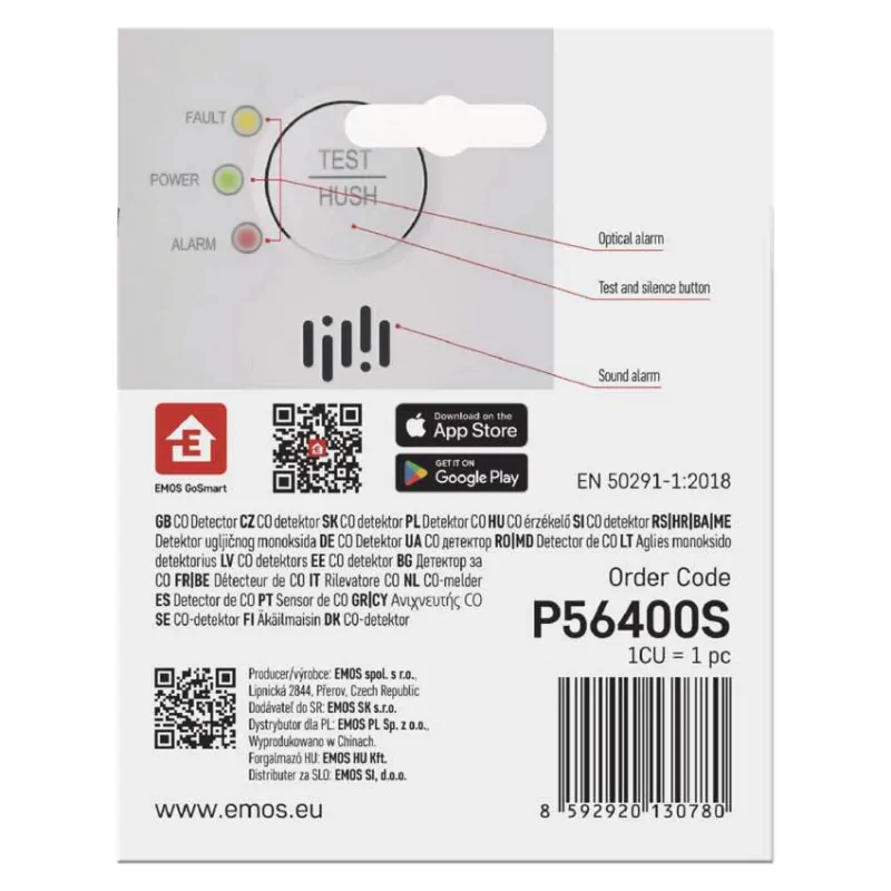 P56400S Detektor tlenku węgla na aplikację GoSmart TCS0101W z WiFi EMOS