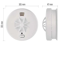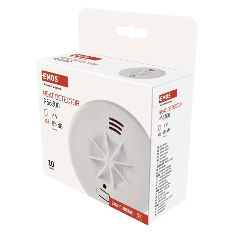Niewielkich rozmiarów czujnik pożarów P56300 marki EMOS, z sygnalizacją optyczno-dźwiękową o żywotności 10 lat. Może być zamontowany na ściennie lub w formie wolnostojącej. Przystosowany jest do napięcia 9V. Głośność sygnalizacji jest na poziomie 85 dB. Małe gabaryty urządzeni pozwolą na zamontowanie na każdej przestrzeni. Produkt objęty gwarancją producenta.
