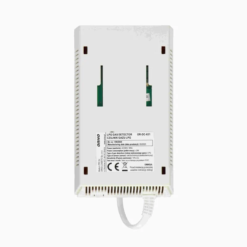 Czujnik OR-DC-631 producenta ORNO, jest nowoczesnym detektorem gazu LPG do zastosowania wewnątrz pomieszczeń. Służy do ciągłego monitoringu obecności i wykrywania gazu LPG wydostającego się z nieszczelności. W urządzeniu zastosowano wysokiej jakości czujnik elektrochemiczny, pozwalający na osiągnięcie wysokiego wskaźnika wykrywalności. Po wykryciu wycieku gazu osiągającego ustawiony próg alarmowy czujnik wyda sygnał dźwiękowy i świetlny.