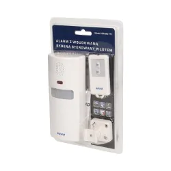 Przenośny alarm sterowany pilotem z wbudowaną syreną i czujnikiem ruchu, wychwytuje ruch z odległości 6 m, kąt widzenia w poziomie 100°, poziom dźwięku 100 dB, learning system (automatyczne logowanie). Pozwala zabezpieczyć dom, mieszkanie, garaż, sklep, biuro, magazyn, żaglówkę, przyczepę kempingową itp. Czujnik zasilany jest na 3 baterie AA i przeznaczony jest tylko do użytku wewnątrz pomieszczeń (IP20).