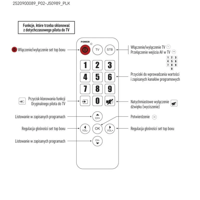 Prosty pilot do dekodera EM190 EM190S EM190L dla seniora czarny J50989 EMOS