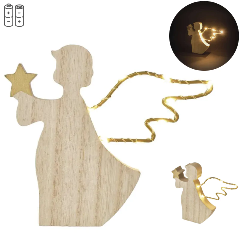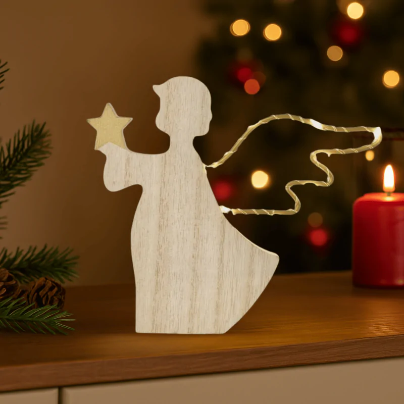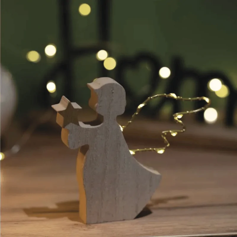 ✔️Bezprzewodowe zasilanieDekoracja Bożonarodzeniowa drewniany aniołek