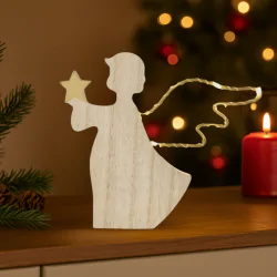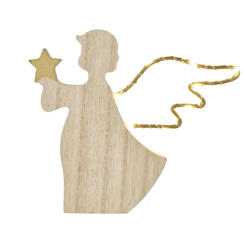 Wykonana z wysokiej jakości drewna figurka zachwyca naturalnym wyglądem i starannym wykończeniem. Jej minimalistyczny styl doskonale współgra z nowoczesnymi oraz klasycznymi aranżacjami. Aniołek LED świetnie komponuje się z innymi świątecznymi dekoracjami, tworząc elegancką całość, która przyciąga wzrok i podkreśla wyjątkowy charakter Świąt Bożego Narodzenia.