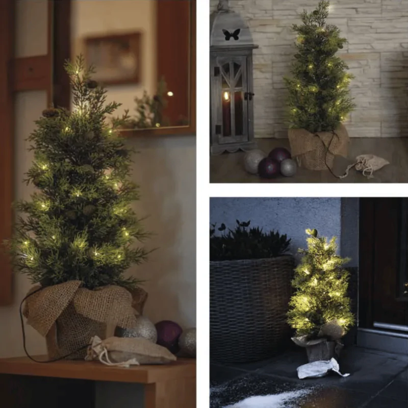 Bezprzewodowa konstrukcja zapewnia pełną swobodę ustawienia, pozwalając umieścić dekorację w dowolnym miejscu bez konieczności podłączania do gniazdka. Zintegrowany timer automatycznie włącza i wyłącza światło, co zwiększa wygodę użytkowania. Wytrzymała budowa i odporność na czynniki zewnętrzne sprawiają, że choinka sprawdzi się zarówno w domu, jak i na tarasie czy balkonie.