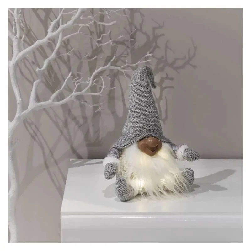 DCFW01 Szary krasnoludek led skrzat świąteczny ze świecącą brodą 3xAA EMOS