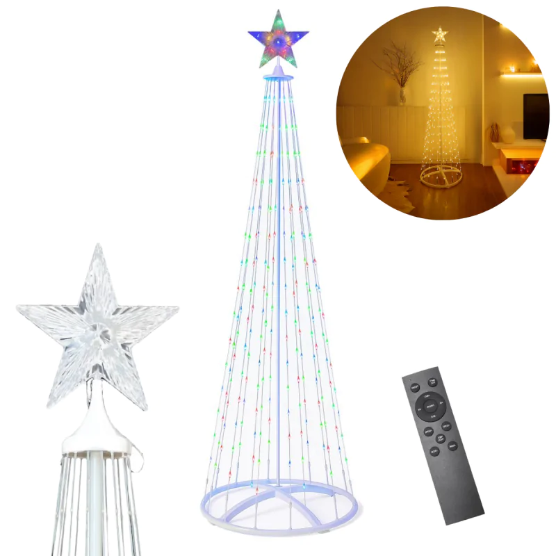 Dekoracja Bożonarodzeniowa na zewnątrz Choinka LED z gwiazdą na pilota RGB+2700K 1,8m EK2403 EKO-LIGHT