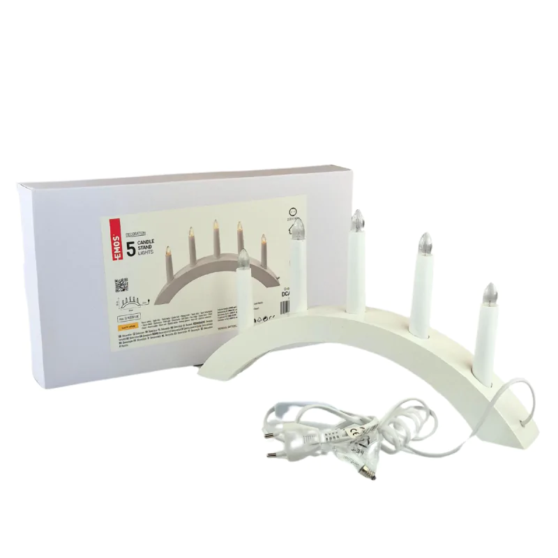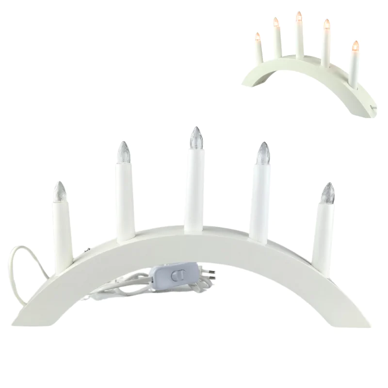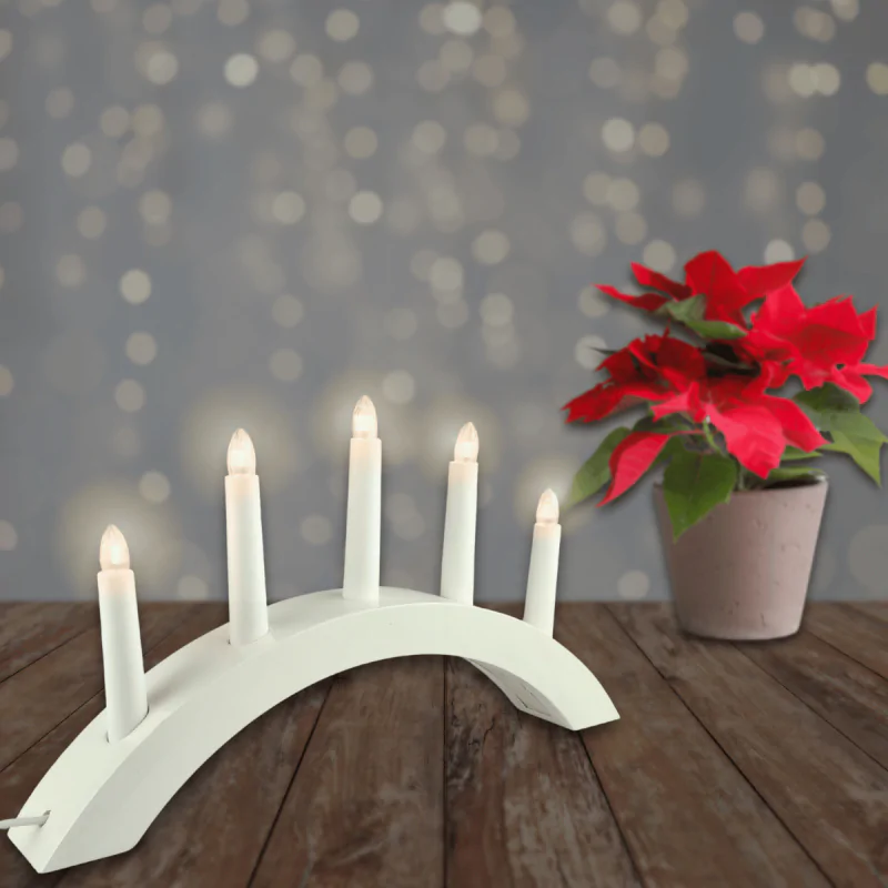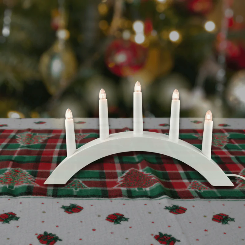 Dekoracja Bożonarodzeniowa Świecznik na 5 świec Biały do prądu