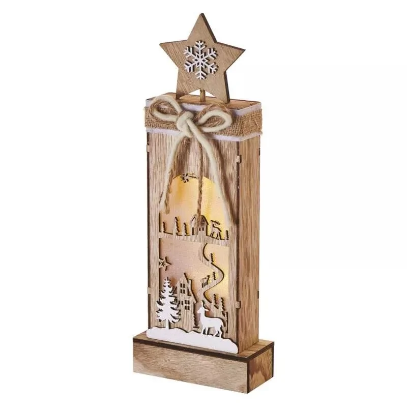 Dekoracja świąteczna drewniany słupek z gwiazdą na baterie 34cm 2xAA timer DCWW13 EMOS
