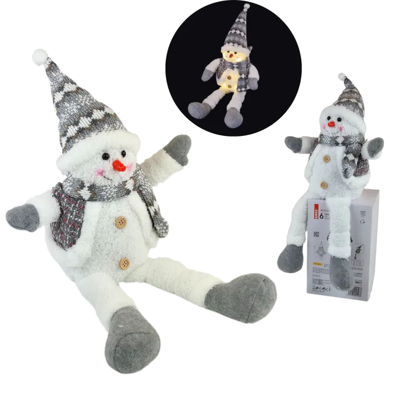 Dekoracja Świąteczna pluszowy siedzący bałwanek na baterie