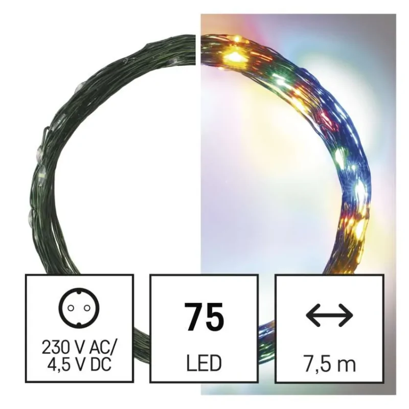 Dekoracje nano łezki 75xLED 7,5m multikolor IP44 timer D3AM02 EMOS