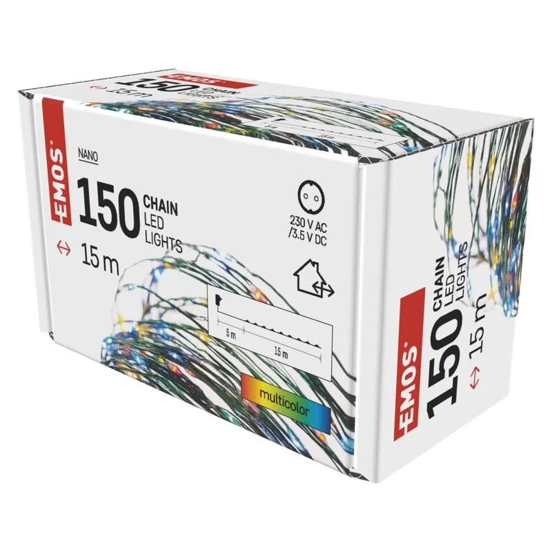 Dekoracyjne łańcuszek LEDx150 15m, multikolor, IP44, timer D3AM03 EMOS
