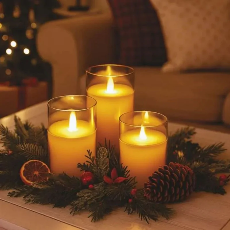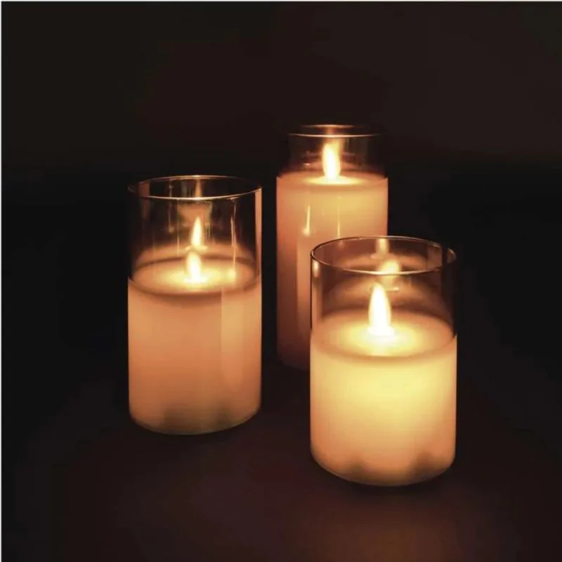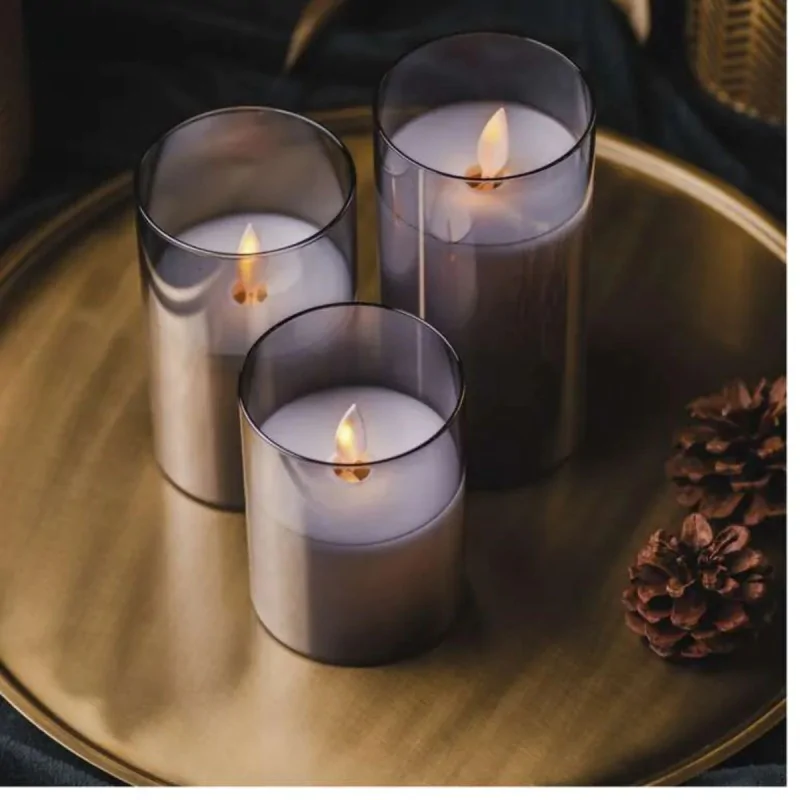 - Modny design - Zestaw 3 szklanych świec LED z ruchomym płomieniem