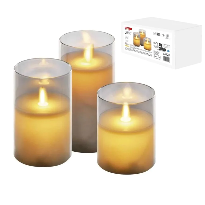 Dekoracyjne szklane świece LED z ruchomym płomieniem 3 sztuki na baterie DCCW05 EMOS