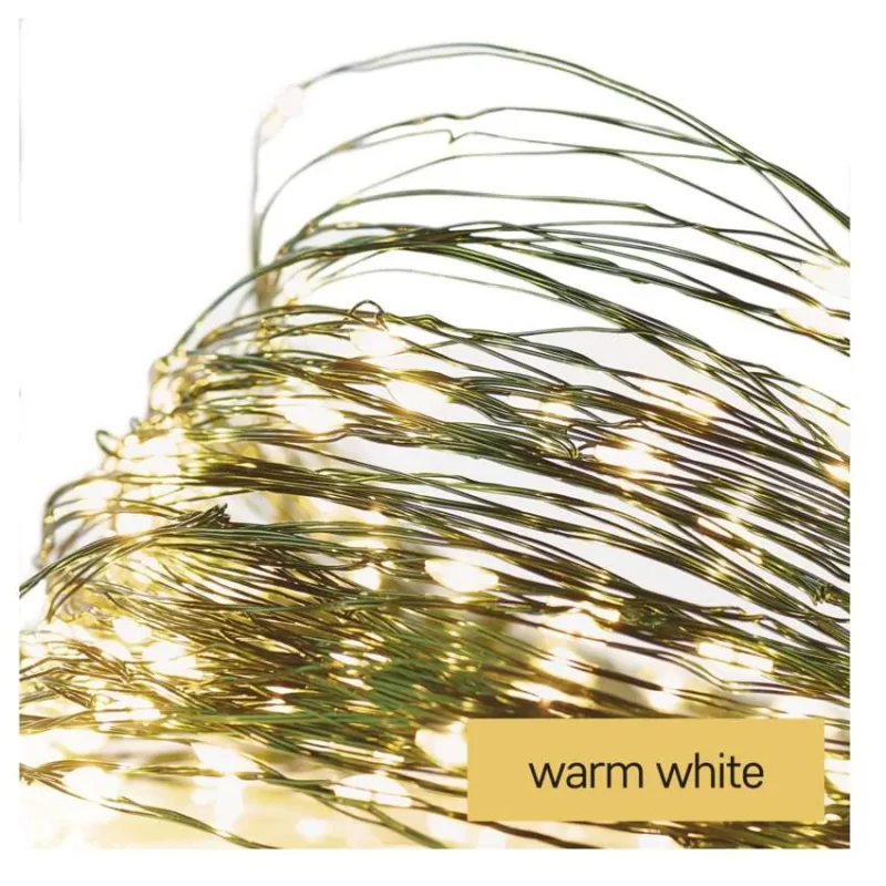 Drucik świetlny NANO łezki 150xLED 15m ciepła biel zielony przewód IP44 timer D3AW05 EMOS