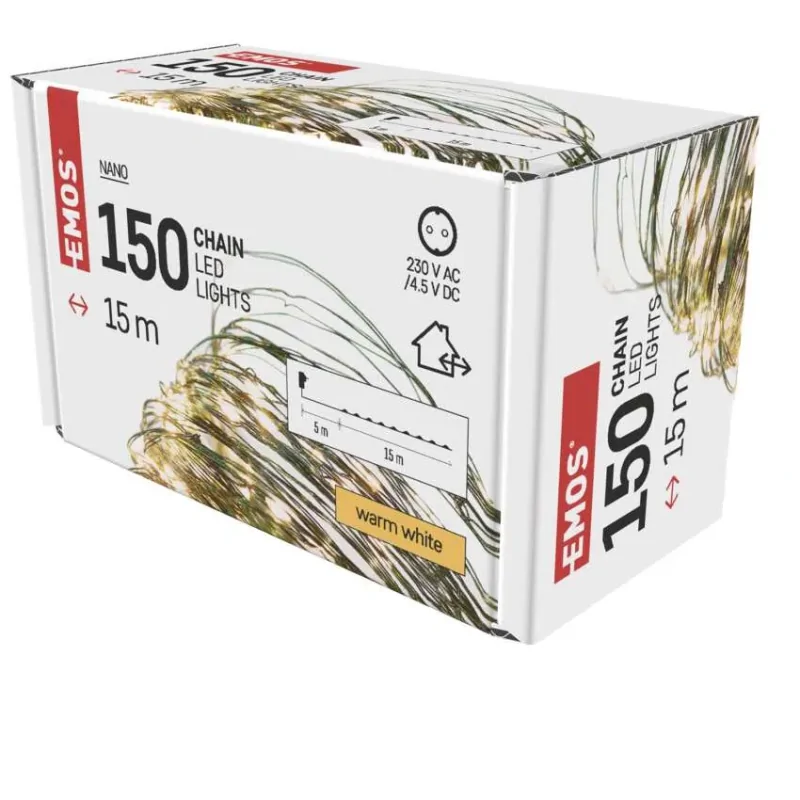 Święcący łańcuch D3AW05 NANO marki EMOS, to elegancki dodatek, który z pewnością stanie się Twoim niezawodnym pomocnikiem podczas tworzenia nie tylko świątecznych aranżacji. Świecący drucik nadają się do wewnętrznych i zewnętrznych zastosowań i posiadają funkcję timera, który jest zintegrowany bezpośrednio z zasilaczem. Lekki drut jest ultra cienki i można go dowolnie wyginać według własnych preferencji. Łańcuchy NANO można ułożyć na choince, jak również na szlachetkach, ramach drzwiowych lub wykorzystać w różnych aranżacjach świątecznych, takich jak wazony gałązkowe. Łańcuch zapewni również stylową dekorację i przyjemne oświetlenie po włożeniu do słoika lub lampionu. Oświetlenie wyróżniają się niskim poborem mocy i długą żywotnością. Światełka świecą z mocą 2,7W o ciepłej barwie światła. Świecący drucik mierzy 15 metra długości. Produkt objęty jest gwarancją producenta.