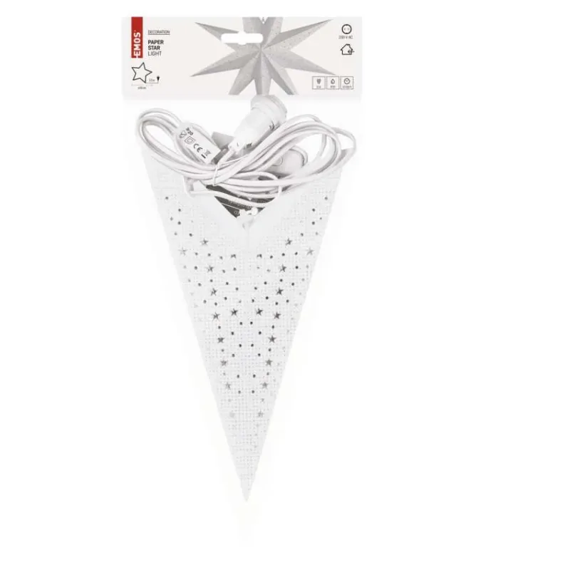 Dekoracja świąteczna DCAZ09 w postaci gwiazdy to produkt marki EMOS, wykonany z mieszanki papieru i bawełny, która stanie się ozdobą każdego wnętrza. Biała gwiazda o ażurowym efekcie, efektownie i przyjemnie rozprasza światło we wnętrzu. Dzięki średnicy 60 centymetrów i długości kabla 3,2 metra możesz zawiesić ją w oknach, na żyrandolu, na framudze drzwi lub w dowolnym miejscu swojego wnętrza. Dekoracja ta wyposażona jest w gniazdo na żarówkę o gwincie E14, dzięki czemu można zastosować żarówkę o preferowanej barwie światła. Jego zaletą jest również łatwość montażu poprzez proste naciągnięcie sznurka. Bożonarodzeniowa gwiazda stworzy wygodną i przytulną świąteczną atmosferę w domu. Stopień ochronny wynosi IP20, więc przeznaczona jest tylko do użytku w pomieszczeniach. Z dekoracjami EMOS po prostu będziesz miał idealne święta.