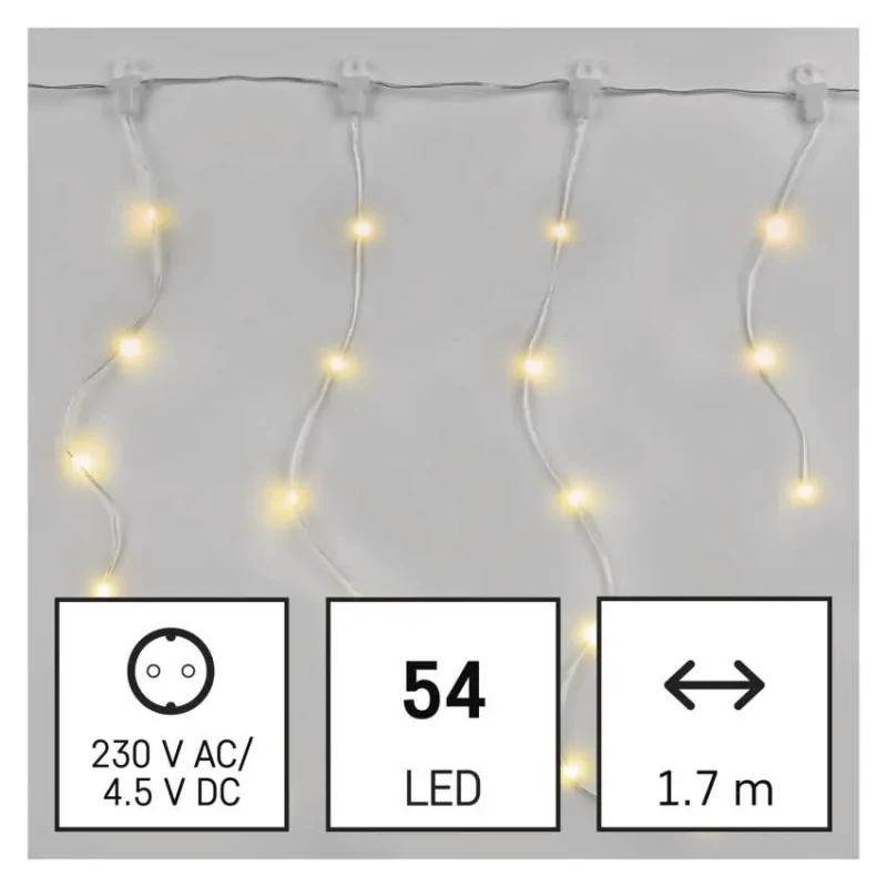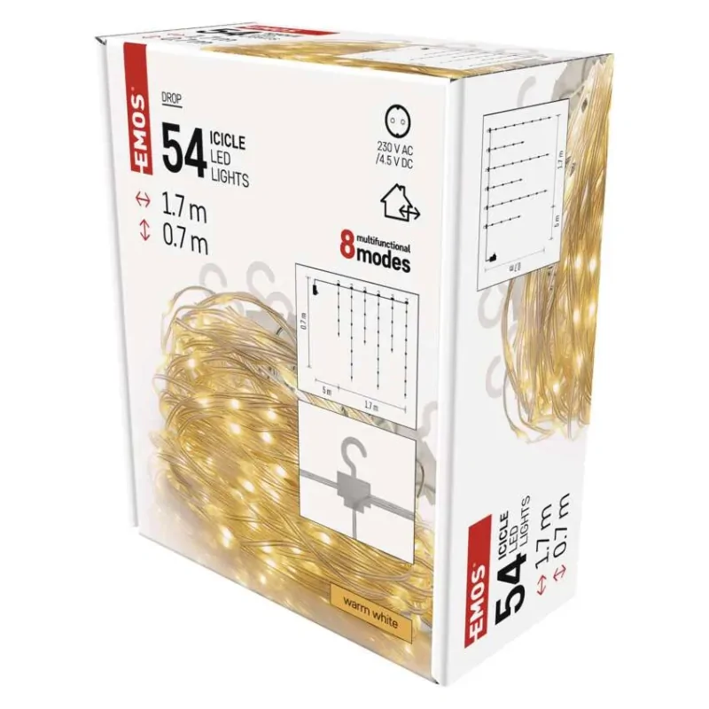 Kurtyna światełka LEDx54 drop łezki 1,7m ciepła biel 8 programów IP44 D3CW01 EMOS
