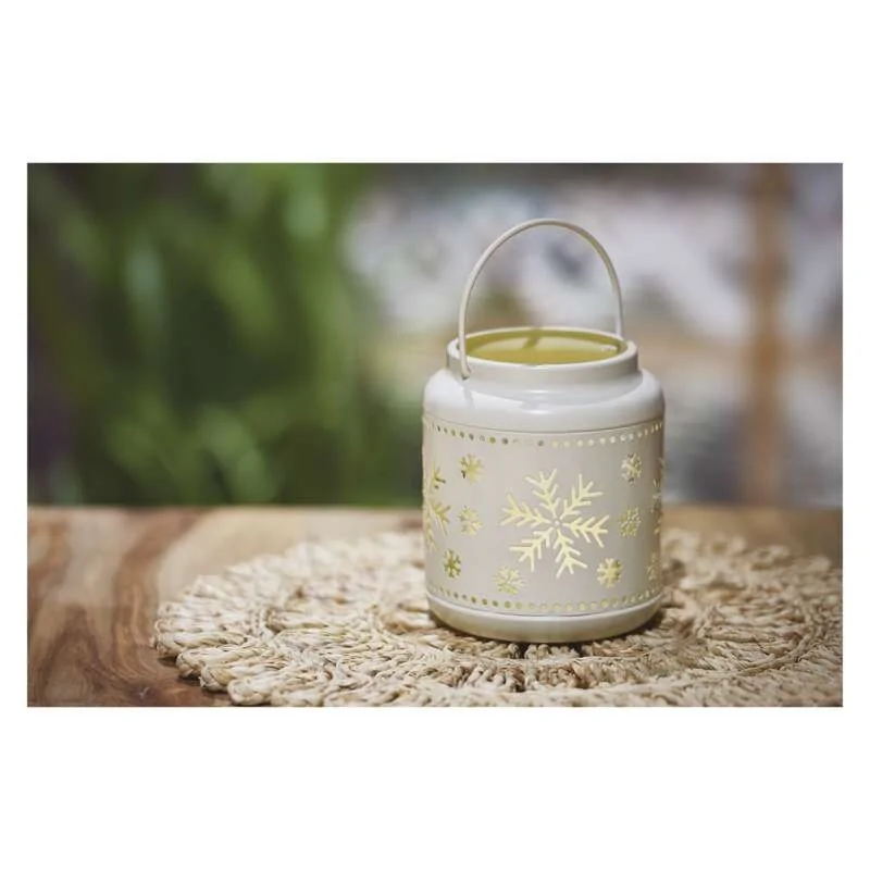 Lampion metalowy ażurowy biały śnieżynka DCLV11 EMOS