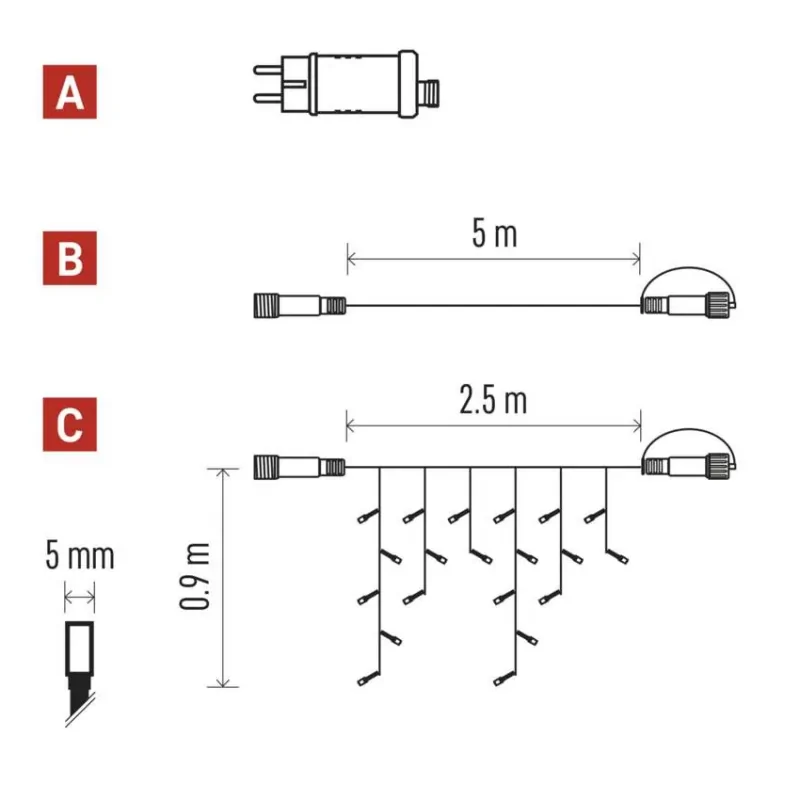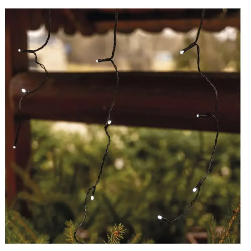 Światełka D1CW02 w formie sopli marki EMOS, będą dekoracją zarówno obiektów na zewnątrz, jak i dekoracje okien lub ścian. Girlanda posiada 100 sztuk wbudowanych diod LED, które rozświetlą przestrzeń przyjemnym i niepowtarzalnym klimatem. Funkcjonalnym rozwiązaniem jest możliwość przedłużenia łańcucha, dzięki czemu stworzymy różne konstrukcję i oświetlimy większą przestrzeń. Stopień odporności to IP44, więc oświetlenie nadaje się do pomieszczeń, jak również do zamontowania na zewnątrz. Światełka mierzą 5 metrów długości i posiadają czarny przewód. Łańcuch świetlny emituje zimną barwą światła o mocy 12W. Produkt objęty jest 2-letnią gwarancją producenta.