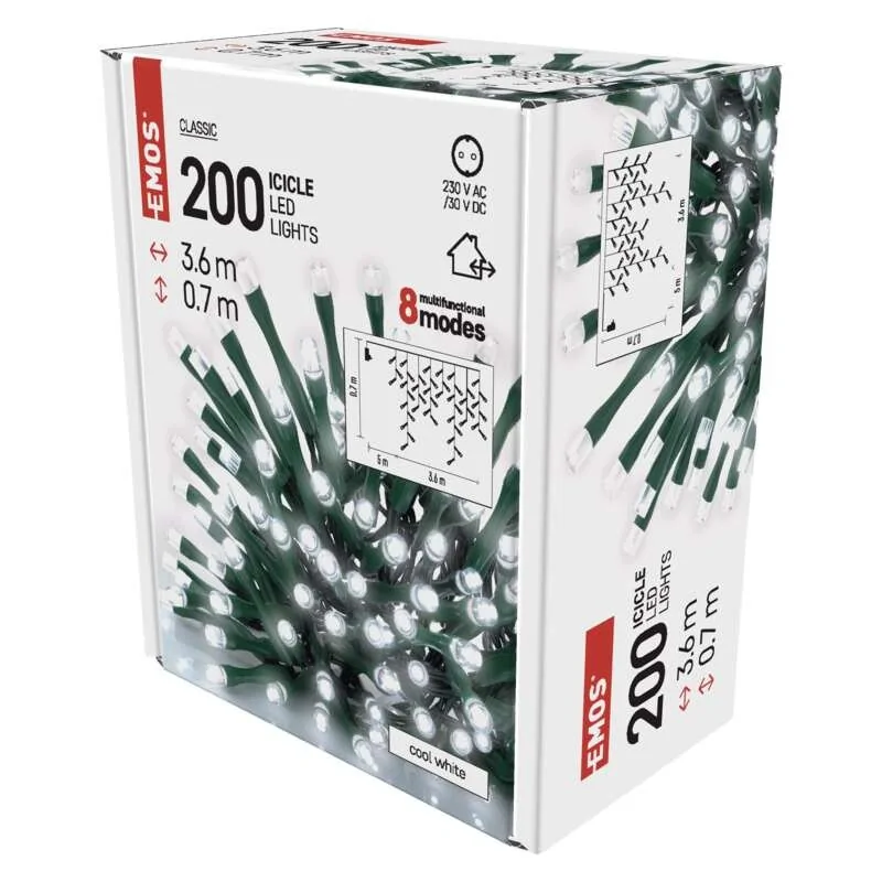 Oświetlenie wiszące - sople 3,6m, 200xLED, zimna biel, 8 programów, IP44, D4CC01 EMOS