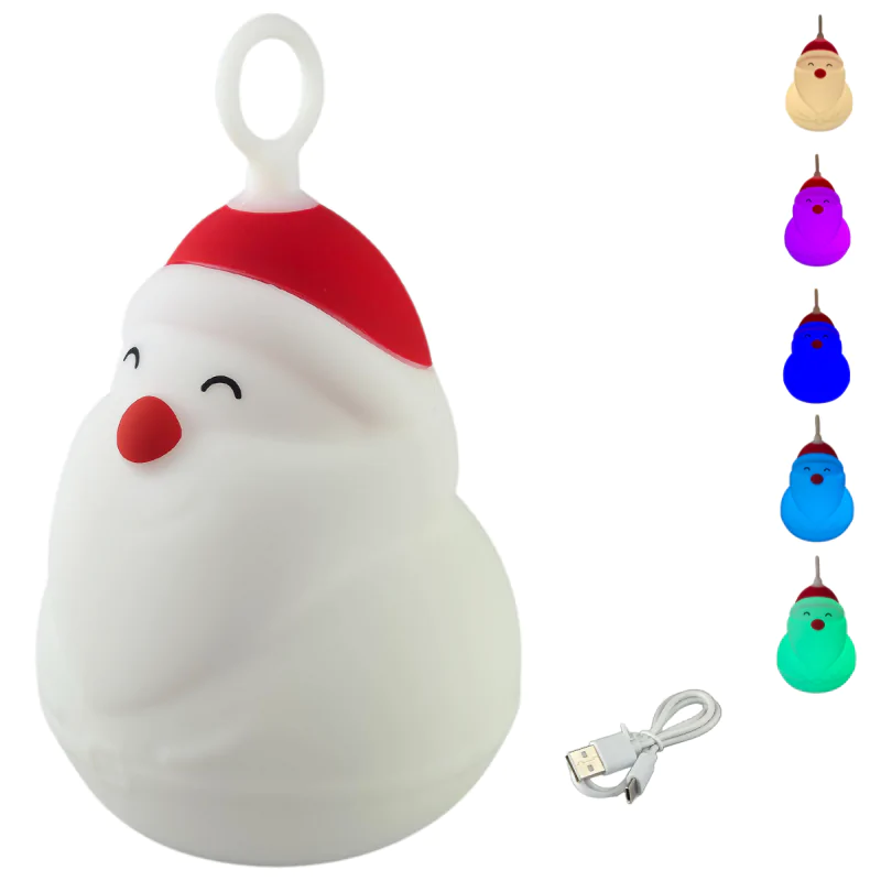 Silikonowa świąteczna lampka nocna led z kolorowym światłem w kształcie Mikołaja