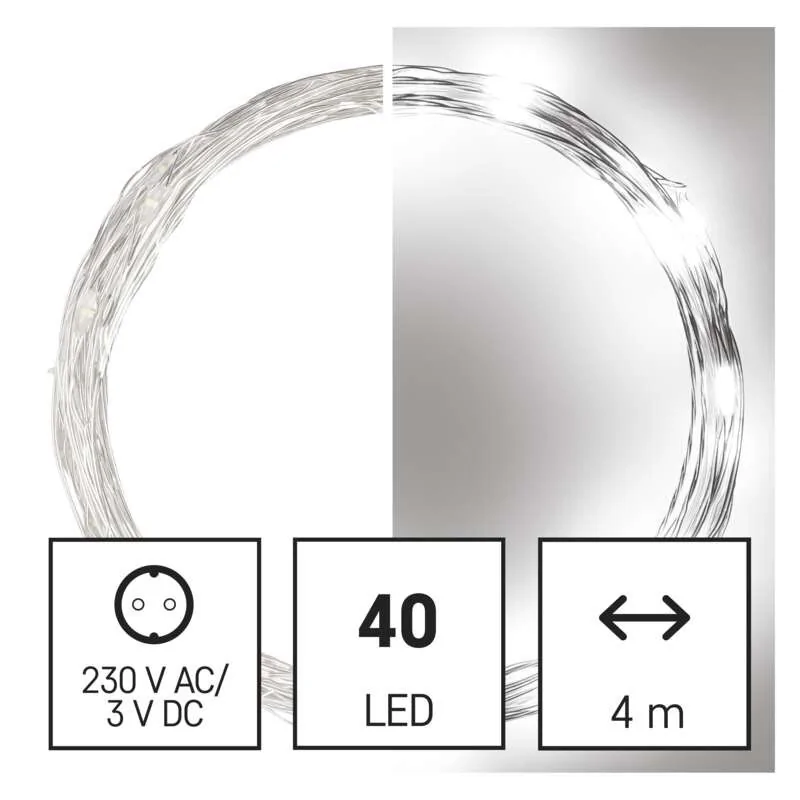Srebrny łańcuszek - łezki 40xLED 4m ciepła biel, IP44 TIMER D3AC02, EMOS