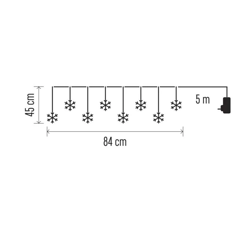 Urocza dekoracja świąteczna DCGW06 w kształcie śnieżynek, nada pomieszczeniu delikatnego oraz niezapomnianego klimatu świątecznego. Girlanda mierzy 84cm szerokości, a najdłuższy kabel ze śnieżką sięga do 45cm. Prezentowane oświetlenie marki EMOS, możemy zamontować w wewnątrz jak i na zewnątrz, stopień ochrony wynosi IP44. Światełek LED jest 8szt i emitują ciepłą barwą światła oraz pobierając moc 0,6W. Wykonane są z tworzywa i dodatkowo wyposażone zostały w przewód zasilający o długości 5m. Produkt objęty jest gwarancją producenta.