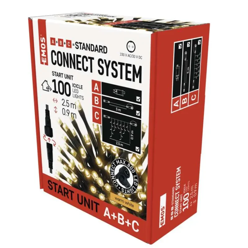 Światełka sople - girlanda łączona 100 x LED 2,5m ciepła biel, timer D1CW02 EMOS
