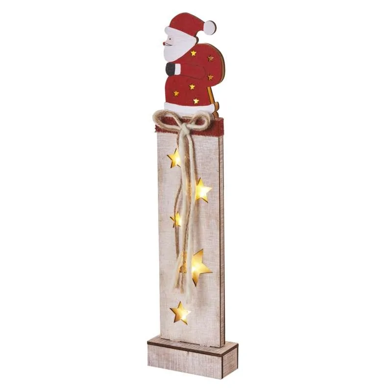 Świecący drewniany słupek z Mikołajem LEDx7, 46cm, 2xAA ciepła biel, IP20, TIMER DCWW11 EMOS