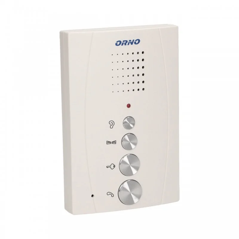 Bezsłuchawkowy zestaw domofonowy marki ORNO idealnie sprawdzi się w domach jednorodzinnych, firmach oraz szkołach. Uniwersalna kolorystyka unifonu obsługiwanego bezsłuchawkowo idealnie odnajdzie się w każdej aranżacji. Głośnomówiący zestaw posiada możliwość regulacji natężenia dźwięku dzięki czemu każdy może dostosować sposób działania urządzenia do własnych potrzeb. Unifon wyposażony jest również w przycisk do sterowania bramą. Prezentowany zestaw domofonowy dostępny jest w trzech wersjach kolorystycznych.