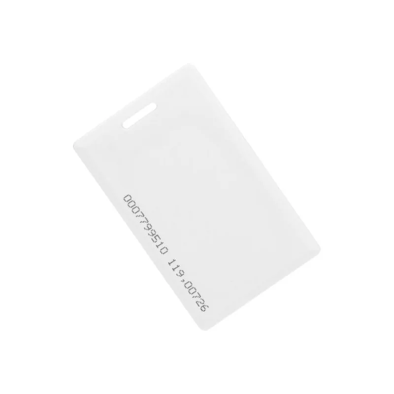 Karta zbliżeniowa do systemów RFID marki ORNO w kolorze białym. Prezentowany produkt służy jako identyfikator w systemach kontroli dostępu oraz rejestracji czasu pracy. Każda ma unikalny numer i wyposażona jest w antenę wewnątrz. Biała karta zbliżeniowa współpracuje z z czytnikami zbliżeniowymi pracującymi w systemie Mifare o częstotliwości 13,56 MHz.