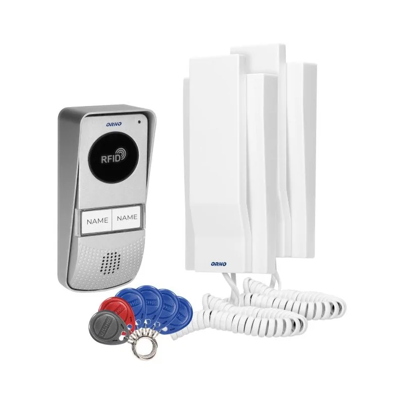 Domofon z dwoma słuchawkami i brelokami