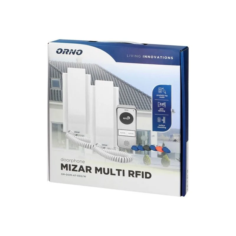 Zestaw domofonowy 2-rodzinny z interkomem natynkowy z czytnikiem breloków MIZAR MULTI OR-DOM-AT-930/W ORNO