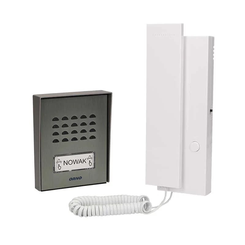 Jednorodzinny zestaw domofonowy marki ORNO to urządzenie zasilane sieciowo. Zestaw nie podlega rozbudowie o kolejne urządzenia. Unifon to biała słuchawka posiadająca jeden wbudowany rodzaj dzwonka z możliwością regulacji jego głośności. Panel zewnętrzny to proste urządzenie z podświetlanym miejscem na nazwisko montowane w sposób natynkowy. Doskonała jakość zastosowanych materiałów gwarantuje trwałość i funkcjonalność domofonu na lata. Zestaw objęty został 2-letnią gwarancją producenta.