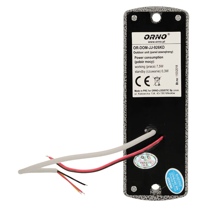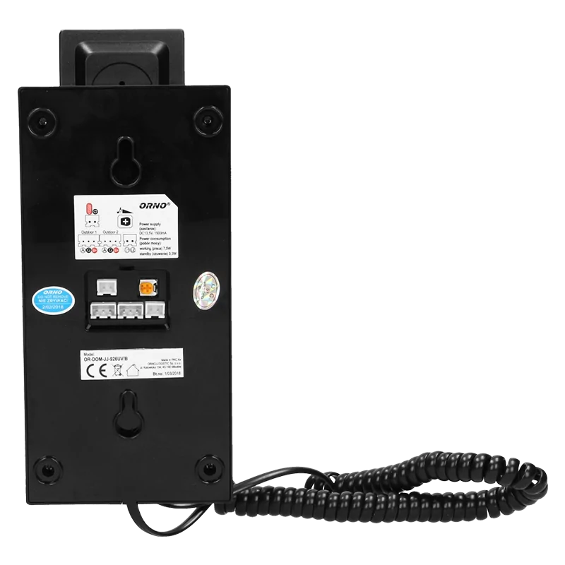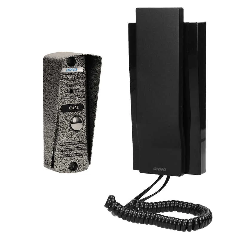 Przewodowy domofon jednorodzinny marki ORNO posiada 3-żyłowy system łączenia. Jest to elastyczne urządzenie pozwalające na rozbudowę o kolejne unifony oraz panele zewnętrzne. Zestaw domofonowy orno pozwala również na sterowanie bramą automatyczną. Rolę unifonu spełnia czarna słuchawka z możliwością regulacji głośności oraz funkcją interkomu. Prosty w obsłudze panel zewnętrzny wyposażony w jeden przycisk można być zainstalowany zarówno pod jak i natynkowo dzięki dołączonej do zestawu obudowie.