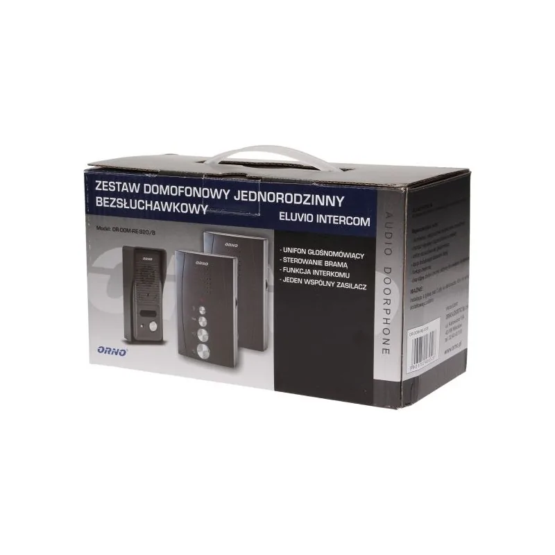 Zestaw domofonowy jednorodzinny z interkomem bezsłuchawkowy czarny ELUVIO OR-DOM-RE-920/B ORNO
