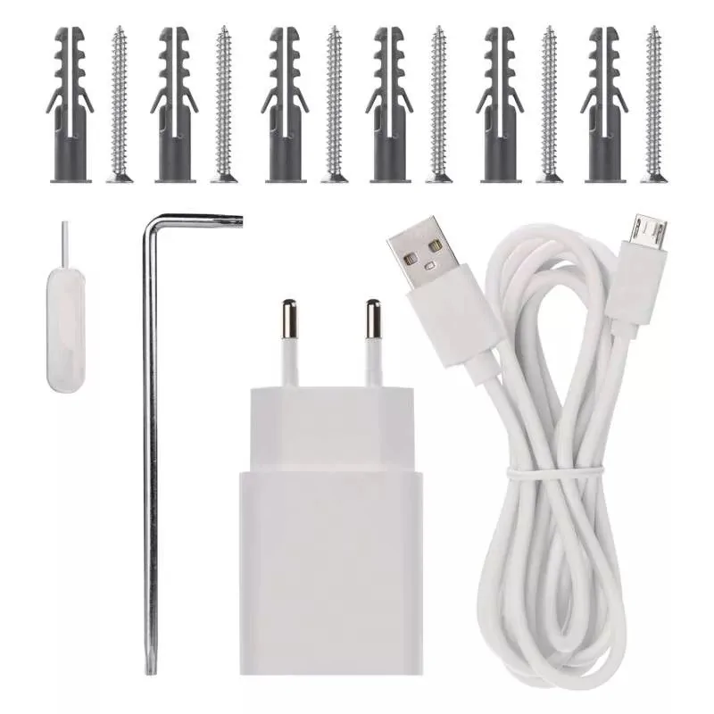 - zawartość opakowania 1× dzwonek do drzwi, 1× bezprzewodowy dzwonek do drzwi, 1× uchwyt, 1× zestaw śrub, 1× śrubokręt, 1× pin RESET, 1× zasilacz, 1× kabel USB, 3× baterie AA LR6 1,5 V, 1× instrukcja obsługi