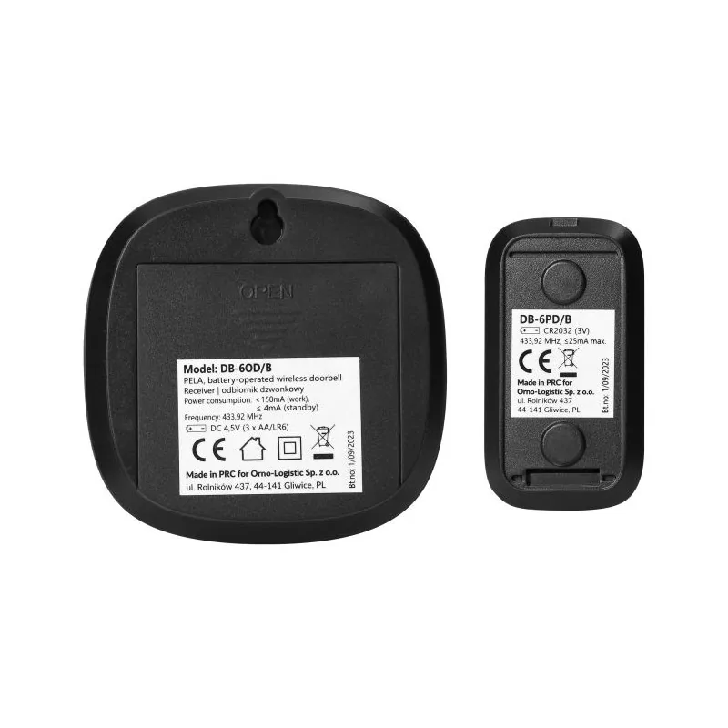 DB-6/B PELA Czarny dzwonek bezprzewodowy z kolorowym podświetleniem RGB 300m 60dźwięków ORNO