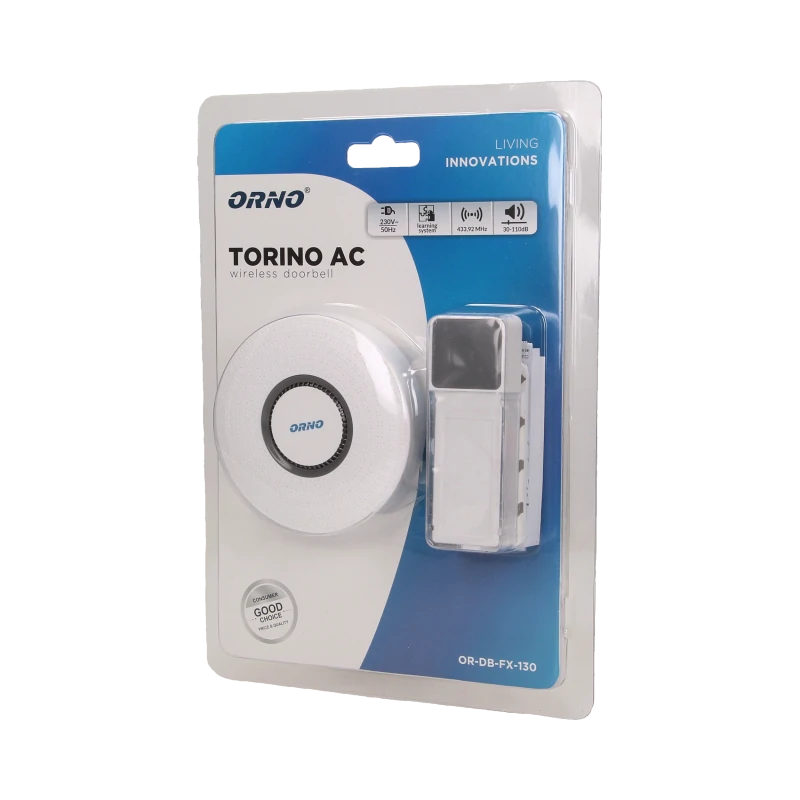 Dzwonek bezprzewodowy AC sieciowy 230V duży zasięg 400 m 58 dźwięków TORINO 2 OR-DB-FX-153 ORNO