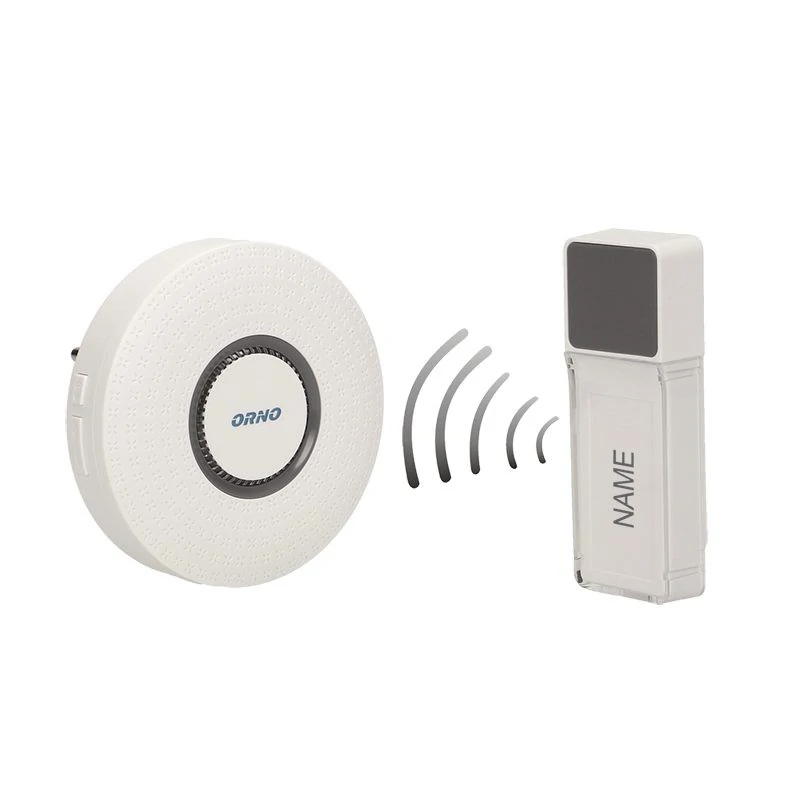Bezprzewodowy dzwonek do drzwi marki ORNO działa w terenie otwartym na zasięg 400m i posiada możliwość rozbudowy o dodatkowe nadajniki. Odbiornik dzwonka zasilany sieciowo posiada 58 melodii do wyboru oraz możliwość regulacji głośności w zakresie 30-110 dB. Nadajnik bateryjny ze względu na podwyższoną klasę szczelności IP44 odporny jest na bryzgi wody oraz wnikanie pyłów z otoczenia. To nie tylko świetny dzwonek do drzwi ale również doskonałe urządzenie przywoławcze sprawdzające się w budynkach urzyteczności publicznej dla osób wymagających stałej opieki. Liczbę przycisków współpracujących ze sobą można zwiększać w miarę potrzeb, a każdemu przyciskowi można przypisać inną melodię. Posiada funkcję learning system (automatyczne logowanie) i nie wymaga instalacji dzwonkowej.