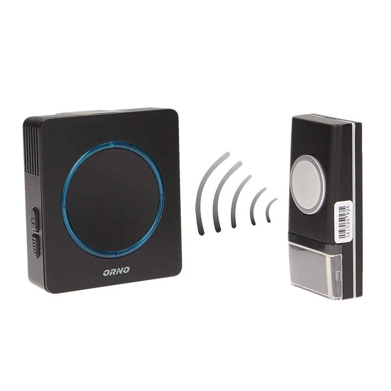 Czarny dzwonek bezprzewodowy na baterie to produkt od firmy ORNO. Zasięg działania dzwonka wynosi 100 m w terenie otwartym. Odbiornik z 36 melodiami do wyboru posiada możliwość regulacji głośności dzięki czemu ściśle dostosowuje się do potrzeb użytkownika. Nadajnik dzwonka ze względu na podwyższoną klasę szczelności bez zarzutów pracuje na świeżym powietrzu. Prezentowany produkt idealnie sprawdzi się jako dzwonek do drzwi jak również urządzenie przywoławcze. Istnieje możliwość rozbudowy dzwonka o dodatkowe nadajniki.