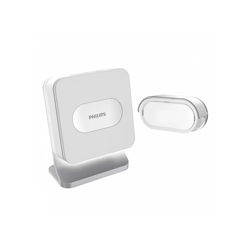 Dzwonek bezprzewodowy Philips wyposażony został w 4 melodie do wyboru. Przycisk posiada wysokiej stopień odporności IP65, dlatego odporny jest na trudne warunki atmosferyczne. Dodatkowo dzwonek wyposażony został w regulację głośności (85dB) z możliwością całkowitego wyciszenia. Zakres działania dzwonka bezprzewodowego to max. 300m w terenie otwartym. Produkt wyposażony został również w sygnalizację świetlną w postaci monochromatycznych diod led, które świecą się przy każdorazowym naciśnięciu przycisku wejścia. Prezentowany model dzwonka bezprzewodowego będzie doskonałym rozwiązanie, w każdym domu, jak również biurze czy gabinecie.
